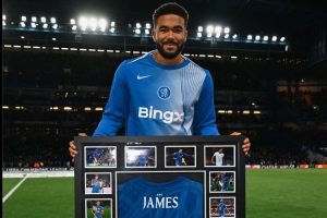 体育资讯10月23日讯 切尔西在本轮欧冠主场迎战阿贾克斯,队长詹姆斯在赛前获赠200场里程碑纪念品。
