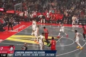 杨瀚森7分钟2分1板2帽开拓者轻取勇士迎首胜库里空砍35+6