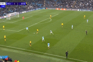 体育资讯11月06日讯 欧冠联赛阶段第4轮曼城vs多特第91分钟,谢尔基突破至禁区后起脚射门,皮球折射入网!曼城4-1多特蒙德!