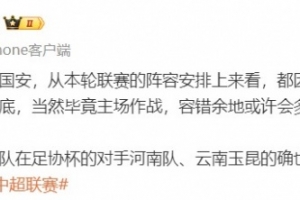 体育资讯8月16日讯 中超第21轮,成都蓉城和北京国安都做了轮换,记者刘闻超发文谈此事。