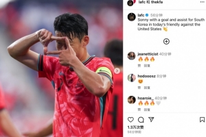 赛后韩足协和洛杉矶FC在ins上一同发布孙兴慜标志性的“拍照”庆祝动作照,并配文写道:“在与美国队的友谊赛中,Sonny为韩国队传射建功。”