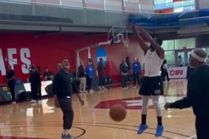 从视频中可以看到,欧文正在练习运球后的投篮,几个后撤步投篮动作都相当丝滑。