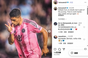 体育资讯10月1日讯 美职联常规赛,迈阿密国际3-5芝加哥火焰,将争冠主动权交到了费城联合手中,苏亚雷斯在赛后更新了社交媒体。