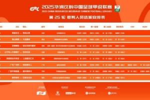 体育资讯10月4日讯 2025华润饮料中甲联赛第25轮裁判选派结果公布,广东广州豹vs深圳青年人、广西平果vs重庆铜梁龙两场争二关键战均安排有VAR裁判。