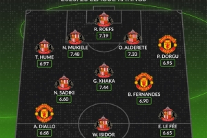 中场:萨迪基(桑德兰)、扎卡(桑德兰)、B费(曼联)