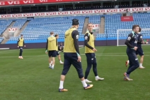 哈兰德随挪威队备战此役,他戴上麦克风参加球队的训练,哈兰德对阿尔茨加尔德在训练中的表现不满意,调侃道:“你还好吗,你喝大了?你昨晚做了什么?”