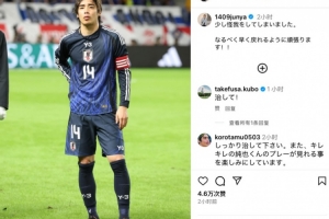南野拓实、久保建英为这条社媒点赞,久保建英还送上祝福:“尽快康复!”