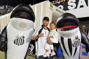 桑托斯俱乐部社媒晒出视频和照片,因伤缺席的内马尔带着女儿玛维来到现场,为桑托斯助威。