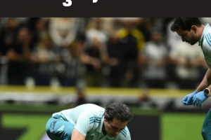 比赛进行到第21分钟,门将卡西奥在封堵一次低平球传中时,头部不慎撞到了队友威廉的膝盖。这位门将倒在草坪上,情况一度让俱乐部的医疗部门感到担忧。