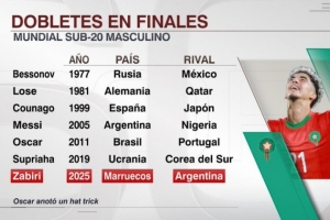 体育资讯10月20日讯 世青赛决赛,扎比里梅开二度,帮助摩洛哥2-0击败阿根廷,捧起冠军奖杯,扎比里是第7位世青赛决赛单场打进2球的球员。