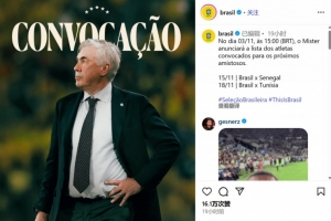 体育资讯10月23日讯 据巴西国家队社媒账号发布的消息,该队下一期的集训名单将于11月3日公布,下个月国际比赛日巴西将与塞内加尔、突尼斯两队踢友谊赛,为明年世界杯热身并进一步考察球员。