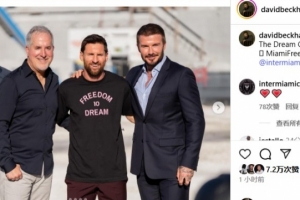 迈阿密老板之一贝克汉姆晒出管理层和梅西的合照,并配文:梦想仍在继续。