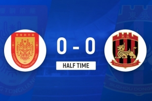 伤停补时6分钟。上半场比赛结束,重庆铜梁龙0-0苏州东吴。