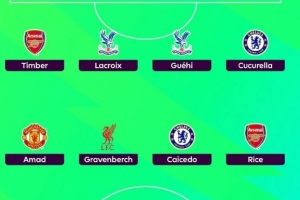 后卫:廷伯(阿森纳)、拉克鲁瓦(水晶宫)、格伊(水晶宫)、库库雷利亚(切尔西)