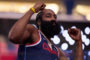 哈登开场连得12分,包揽球队所有得分,快船12-2领先雷霆。