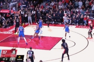 杨瀚森7分钟2分1板2帽开拓者轻取勇士迎首胜库里空砍35+6